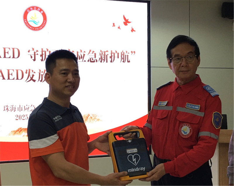 交付仪式上,接收方正式成为珠海应急志愿者,担负起向珠海寄递同行普及应急救护知识、开展志愿服务活动、传承志愿服务精神的责任。珠海市应急志愿者协会会长滕华剑表示,包括快递员、外卖配送人员在内,珠海新业态劳动者遍布城乡各处,是创新开展社会治理、及时发现应对急难险重情况的关键力量。以本次培训、交付活动为契机,接下来,协会还将争取更多社会资源,扩大AED等应急设备投放面,吸纳更多新就业群体、社会热心人士参与进来,织密应急救援网,缩短响应时限,努力打造3至5分钟社会救援圈。(来源:观海融媒)