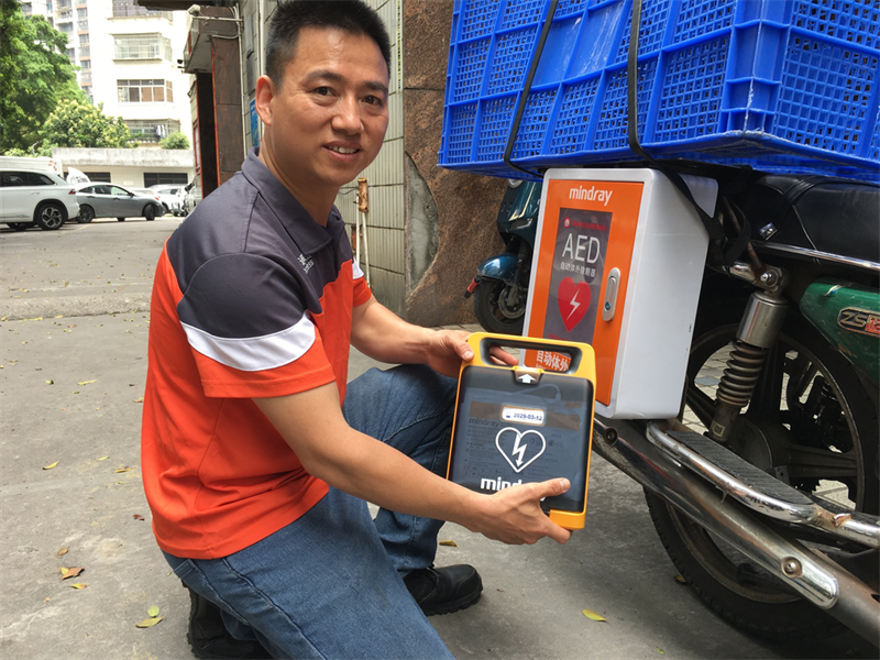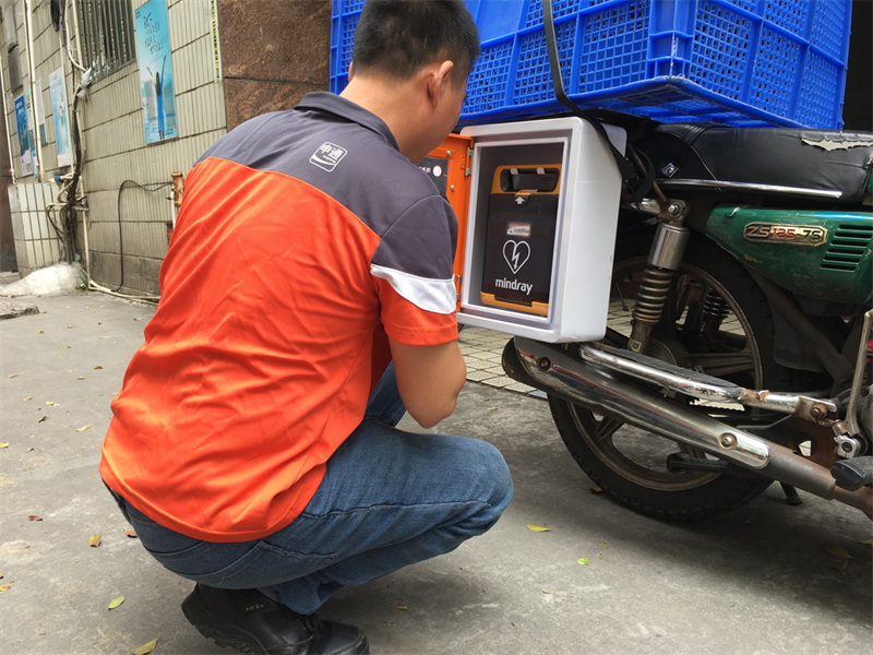 刚好就在不久前,国内热心企业向上述协会捐赠AED设备,计划在社会面推广使用,双方于是达成了建设珠??斓萘煊蛴本戎ぷ髡镜墓彩??!?急救中有‘黄金4分钟’的说法,假如碰到心源性疾病患者,需要用到急救设备,我学过这些知识,可以马上派上用场,不用再等医护人员到,也能为病患争取生机?!敝熘苁に?,完成交付接收,他会将AED设备放到派件车辆专用柜中,每天随车出动,第一时间应对遇到了突发险情;为提高移动急救平台使用率,他会标注开箱钥匙的存放位置,方便其不在场时市民群众取用。