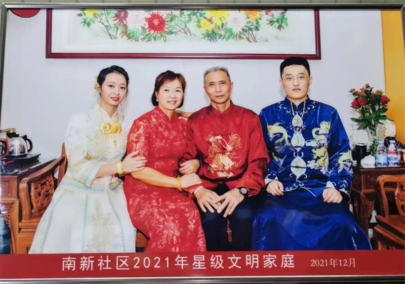 妻子陈红焕退休前在岗位上恪尽职守,退休后专注于庭院设计和环境美化,由她一手打造的家庭花园在2020年获高栏港经济区“美丽庭院”一等奖,2021年获金湾区平沙镇“最美花园”风尚奖。2022年,他们一家被平沙南新社区居委会评为“六星级文明家庭”。