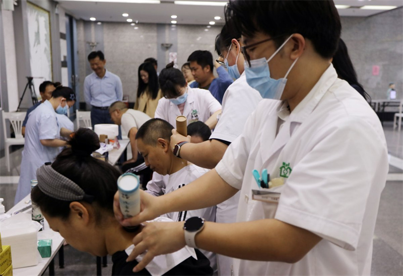 活动现场设置了多个特色服务区域。体质辨识区引入中医机器人“探脉哥”,为参与者进行体质判定,并针对失眠、疲劳等亚健康状态提供个性化的饮食、运动和情志调理建议。在颈肩腰腿痛诊疗区,不少常年伏案工作的记者体验了推拿、火龙罐、针灸等中医特色疗法。一位刚体验完火龙罐的记者表示:“整个肩膀都轻松了,紧绷的肌肉得到了很好的缓解?!贝送?,养生茶饮区准备了针对熬夜、疲劳、用眼过度等职业需求的特调茶饮,也受到好评。