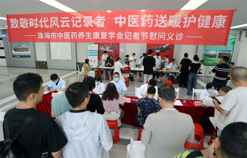在第二十六个中国记者节来临之际,“致敬时代风云记录者,中医药送暖护健康”——珠海市中医药养生康复学会记者节慰问义诊活动在珠海电视台1200平米演播厅大堂举行。珠海市多位资深中医专家通过望、闻、问、切等方式,为前来咨询的新闻工作者进行综合健康评估,并针对常见的职业健康问题提供专业建议。