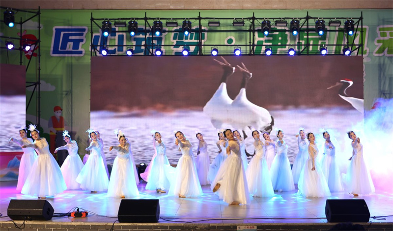 晚上7时30分许,文艺晚会在开场舞《万紫千红》中拉开帷幕。整台晚会节目形式多样、内容积极向上,既有传统文化的现代表达,也有红色记忆与家国情怀的深情传递。