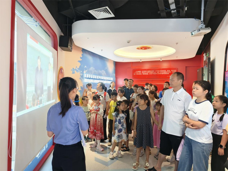 活动伊始,亲子家庭在检察官的带领下,走进了“小金贝”法治教育基地。检察官结合基地内图文并茂的展板、生动的案例视频和有趣的互动装置,以互动问答的形式让亲子家庭了解未成年人?;し?、预防校园欺凌等知识。孩子们通过沉浸式体验,直观地了解了法律的重要性,在心中播下了法治的种子。