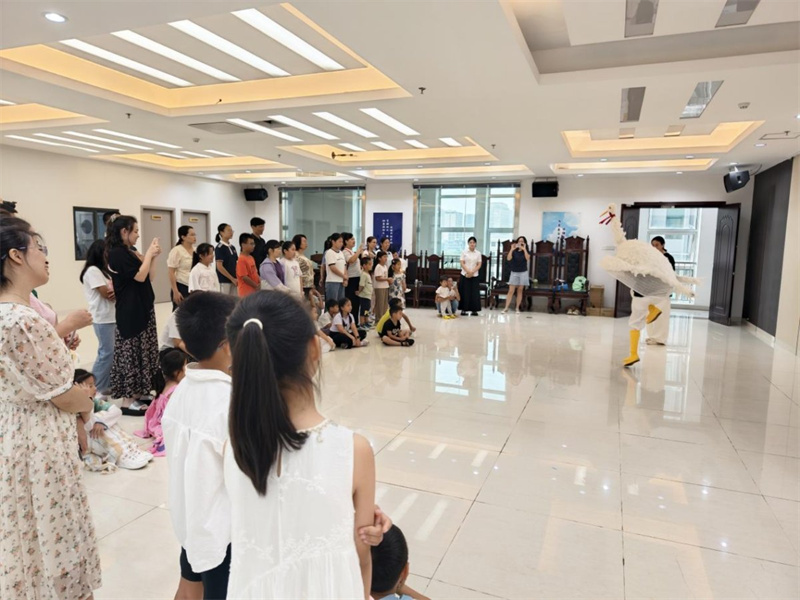 最具特色的环节当属非遗鹤舞互动普法课堂。国家级非遗项目三灶鹤舞区级代表性传承人谈锦徽老师讲述了鹤舞与禁毒宣传相结合的歌曲,并带领全场用粤语齐声朗读:“白鹤仙仙白鹤仙,摞鱼人仔守海边,白粉毒品唔好掂,三灶平安福满船……”朗朗上口的童谣,将拒毒防害的观念深深烙印在孩子们心中,同时将鹤舞的优雅姿态与法律内涵巧妙结合。孩子跟着老师学习“展翅”拒绝伤害、“鹤立”自我?;さ榷?,在趣味盎然的实践中,将法治精神深植于心。