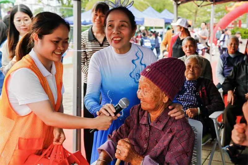 汇演穿插的重阳知识问答互动环节备受欢迎,长者们踊跃参与,欢声笑语不断。百岁归侨叶婆婆精神矍铄,在问答中对重阳习俗、本地发展等问题对答如流,清晰思维与爽朗笑容获全场多次掌声。社区工作人员为其送上节日礼品,致以诚挚祝福与崇高敬意。