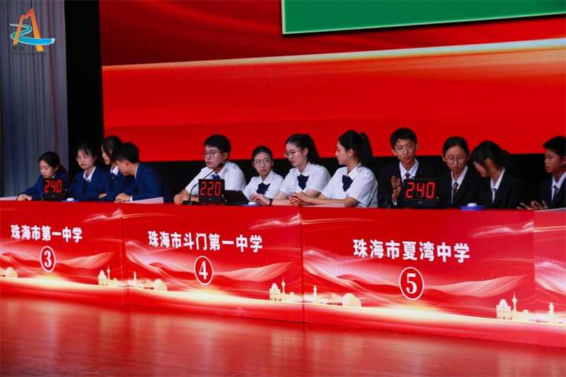 经过两个多小时的激烈角逐,珠海市斗门区珠峰实验学校、珠海市礼和中学、珠海市金海岸中学、横琴粤澳深度合作区首都师范大学子期实验中学凭借出色发挥,成功赢得通往总决赛的入场券。本次竞赛不仅为珠海学子搭建了展示才华、交流共进的平台,更进一步增强了青少年对祖国的认同感与归属感,生动诠释了新时代青年爱国奋进、积极向上的青春风采。