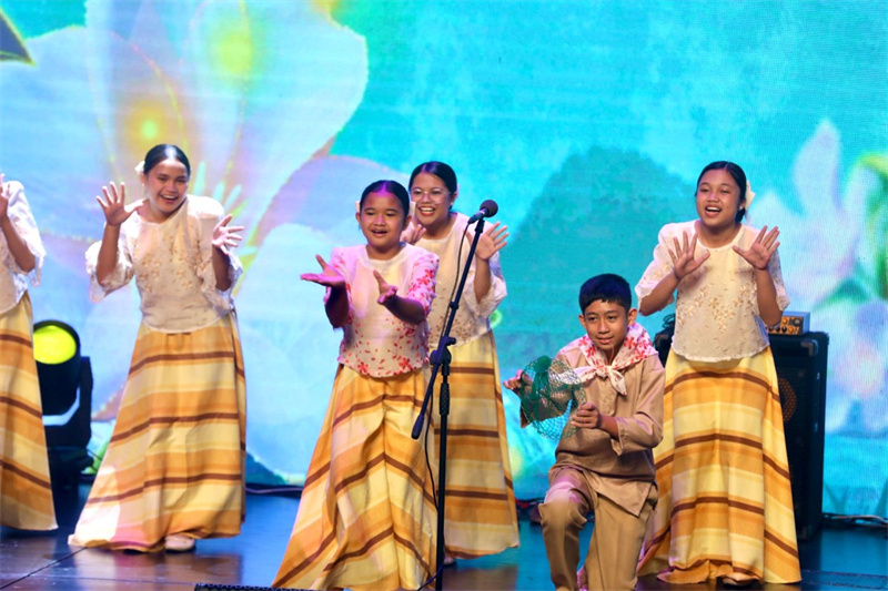 演出在热烈而亲切的氛围中拉开帷幕。珠澳合作节目《珠澳就是这样》由龙鸣传音融合乐队与澳门歌手张云龙、左文轩共同呈现,以多语种演唱展现文化共融的生动画面;当《月亮代表我的心》歌声响起,观众不自觉跟随熟悉旋律齐声合唱,不少人按亮手机灯光,剧场内汇聚成一片温暖的“星?!?,气氛温馨而感人;来自菲律宾的罗布克童声合唱团则以纯净优美的和声打动观众,赢得阵阵掌声。