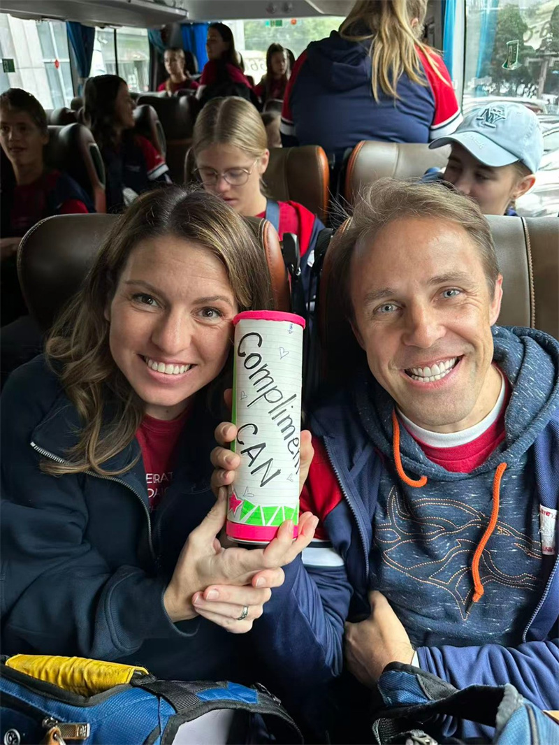 这些来自美国青少年的留言,源于舞团一项温暖的传统——“夸夸瓶”。团长贺家丽说:“旅途中我们每天都会请学生在纸条上写下对彼此的赞美,放进一个简易的薯片筒。这能帮助孩子们建立自信,创造良好的团队氛围?!倍诶肟楹G埃⒆用且哺庾鞘行聪铝怂堑男睦锘?。